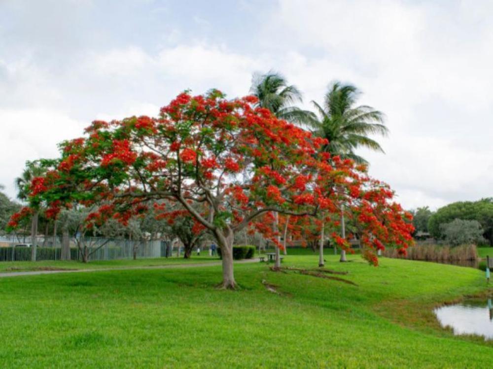 بأزهارها الحمراء الزاهية وتفرعاتها الواسعة، تُعد من أجمل أشجار الزينة والظل التي تمنح المكان طابعًا استوائيًا رائعًا.